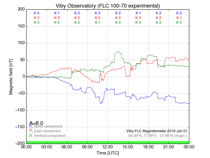 Magnetometer Viby Viby (Sollentuna), Sweden · geographic coordinates: 59°27' N 17°54 E · geomagnetic coordinates (2017): 57.69°N, 106.22°E |