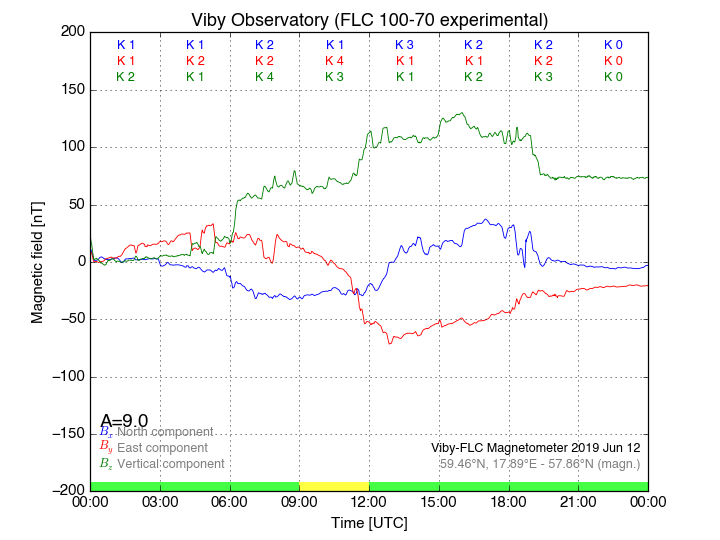 Magnetometer Viby Viby (Sollentuna), Sweden · geographic coordinates: 59°27' N 17°54 E · geomagnetic coordinates (2017): 57.69°N, 106.22°E |