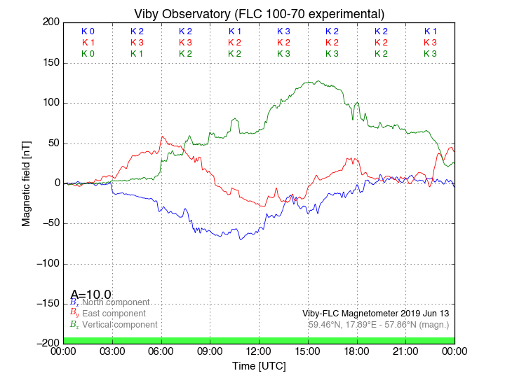 Magnetometer Viby Viby (Sollentuna), Sweden · geographic coordinates: 59°27' N 17°54 E · geomagnetic coordinates (2017): 57.69°N, 106.22°E |