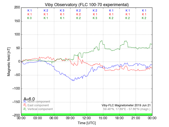 Magnetometer Viby Viby (Sollentuna), Sweden · geographic coordinates: 59°27' N 17°54 E · geomagnetic coordinates (2017): 57.69°N, 106.22°E |
