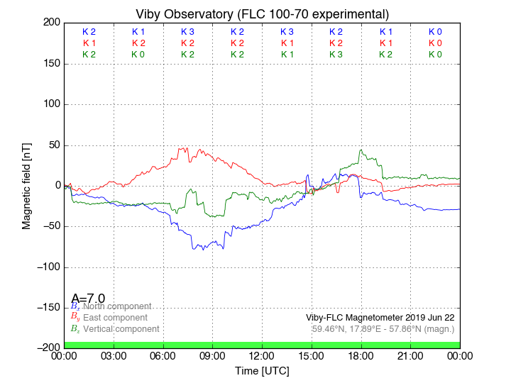 Magnetometer Viby Viby (Sollentuna), Sweden · geographic coordinates: 59°27' N 17°54 E · geomagnetic coordinates (2017): 57.69°N, 106.22°E |