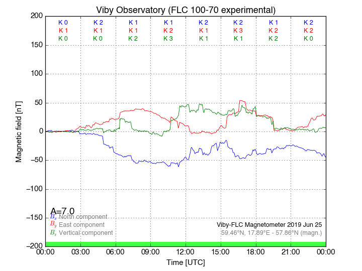 Magnetometer Viby Viby (Sollentuna), Sweden · geographic coordinates: 59°27' N 17°54 E · geomagnetic coordinates (2017): 57.69°N, 106.22°E |