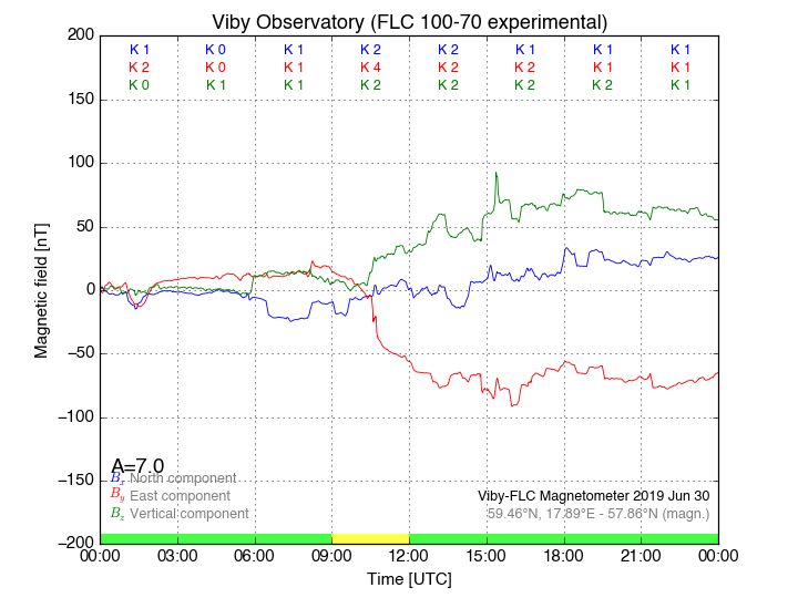 Magnetometer Viby Viby (Sollentuna), Sweden · geographic coordinates: 59°27' N 17°54 E · geomagnetic coordinates (2017): 57.69°N, 106.22°E |