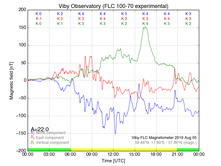 Magnetometer Viby Viby (Sollentuna), Sweden · geographic coordinates: 59°27' N 17°54 E · geomagnetic coordinates (2017): 57.69°N, 106.22°E |
