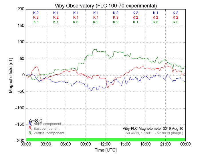 Magnetometer Viby Viby (Sollentuna), Sweden · geographic coordinates: 59°27' N 17°54 E · geomagnetic coordinates (2017): 57.69°N, 106.22°E |