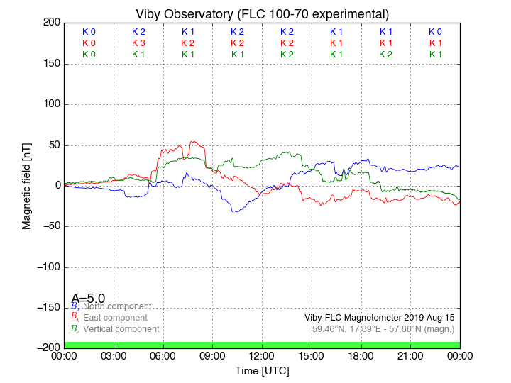 Magnetometer Viby Viby (Sollentuna), Sweden · geographic coordinates: 59°27' N 17°54 E · geomagnetic coordinates (2017): 57.69°N, 106.22°E |