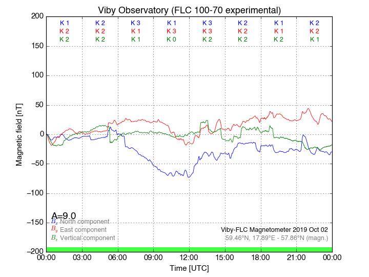 Magnetometer Viby Viby (Sollentuna), Sweden · geographic coordinates: 59°27' N 17°54 E · geomagnetic coordinates (2017): 57.69°N, 106.22°E |