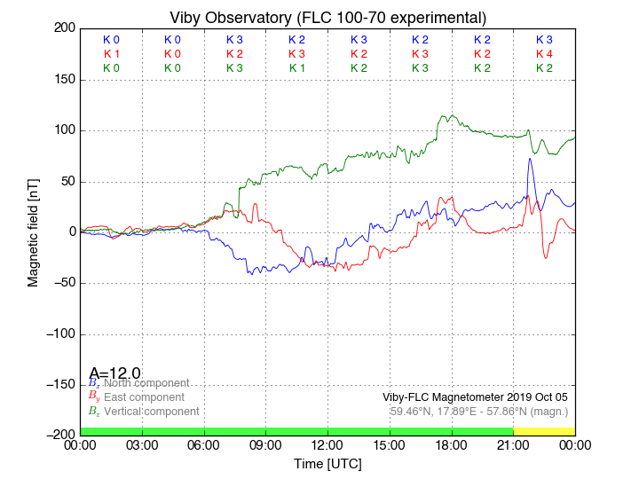 Magnetometer Viby Viby (Sollentuna), Sweden · geographic coordinates: 59°27' N 17°54 E · geomagnetic coordinates (2017): 57.69°N, 106.22°E |