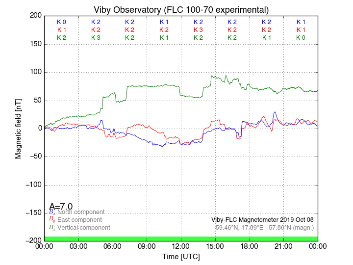 Magnetometer Viby Viby (Sollentuna), Sweden · geographic coordinates: 59°27' N 17°54 E · geomagnetic coordinates (2017): 57.69°N, 106.22°E |