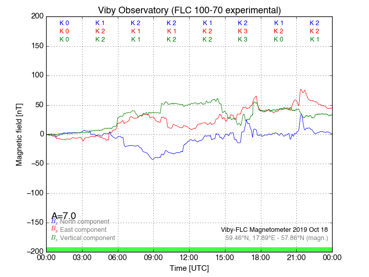 Magnetometer Viby Viby (Sollentuna), Sweden · geographic coordinates: 59°27' N 17°54 E · geomagnetic coordinates (2017): 57.69°N, 106.22°E |