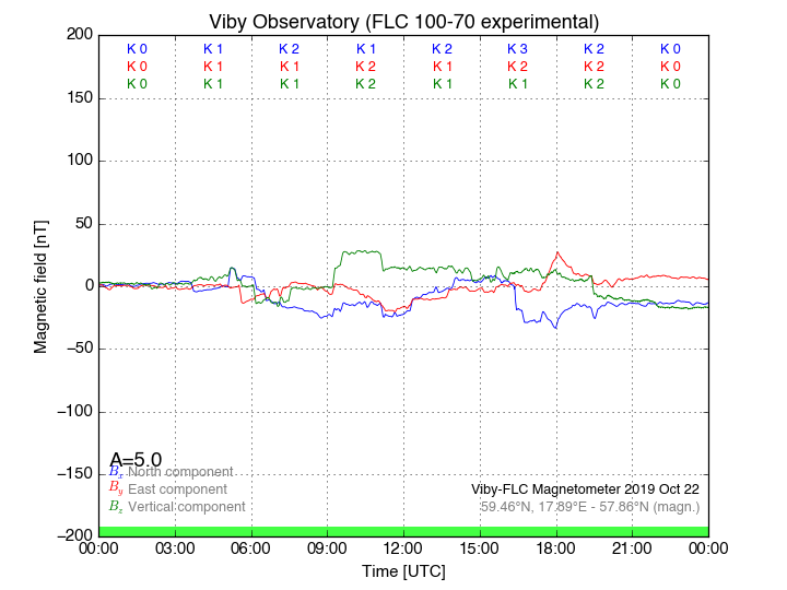 Magnetometer Viby Viby (Sollentuna), Sweden · geographic coordinates: 59°27' N 17°54 E · geomagnetic coordinates (2017): 57.69°N, 106.22°E |