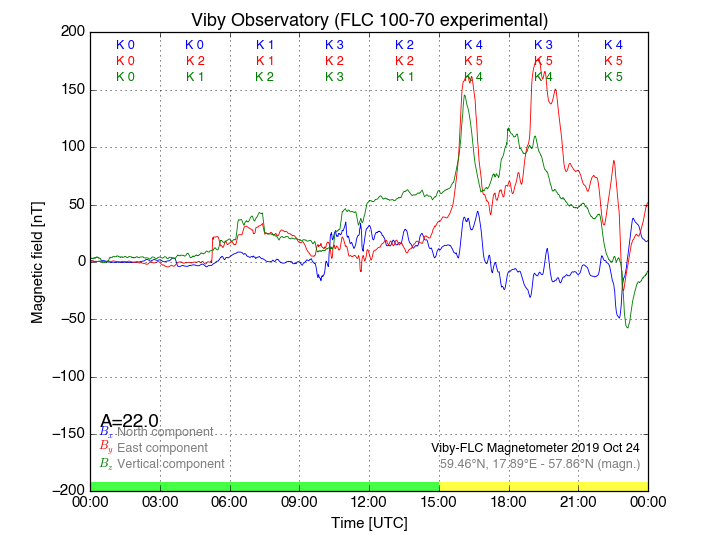 Magnetometer Viby Viby (Sollentuna), Sweden · geographic coordinates: 59°27' N 17°54 E · geomagnetic coordinates (2017): 57.69°N, 106.22°E |