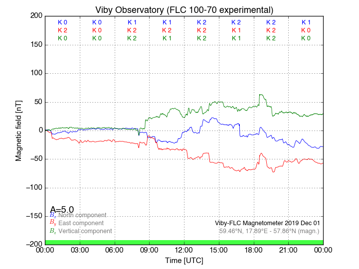 Magnetometer Viby Viby (Sollentuna), Sweden · geographic coordinates: 59°27' N 17°54 E · geomagnetic coordinates (2017): 57.69°N, 106.22°E |