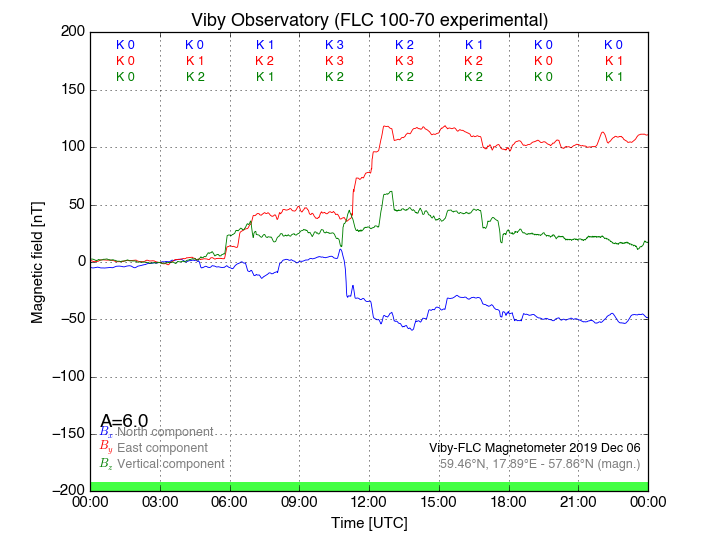 Magnetometer Viby Viby (Sollentuna), Sweden · geographic coordinates: 59°27' N 17°54 E · geomagnetic coordinates (2017): 57.69°N, 106.22°E |