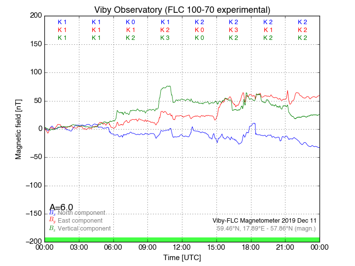 Magnetometer Viby Viby (Sollentuna), Sweden · geographic coordinates: 59°27' N 17°54 E · geomagnetic coordinates (2017): 57.69°N, 106.22°E |
