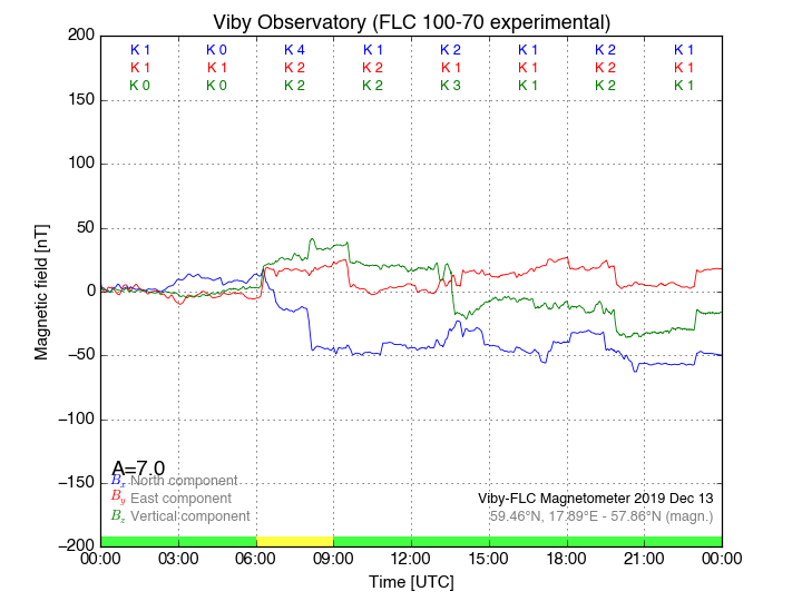 Magnetometer Viby Viby (Sollentuna), Sweden · geographic coordinates: 59°27' N 17°54 E · geomagnetic coordinates (2017): 57.69°N, 106.22°E |