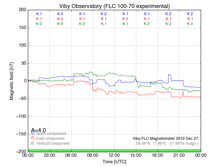 Magnetometer Viby Viby (Sollentuna), Sweden · geographic coordinates: 59°27' N 17°54 E · geomagnetic coordinates (2017): 57.69°N, 106.22°E |