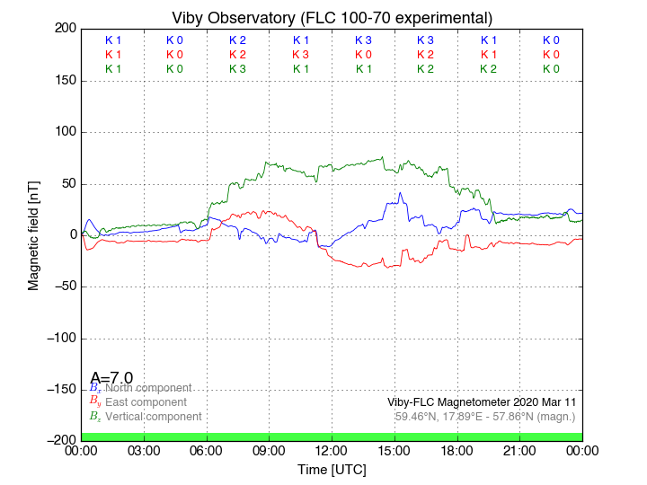 Magnetometer Viby Viby (Sollentuna), Sweden · geographic coordinates: 59°27' N 17°54 E · geomagnetic coordinates (2017): 57.69°N, 106.22°E |