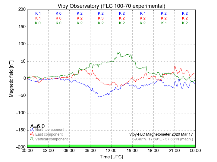 Magnetometer Viby Viby (Sollentuna), Sweden · geographic coordinates: 59°27' N 17°54 E · geomagnetic coordinates (2017): 57.69°N, 106.22°E |