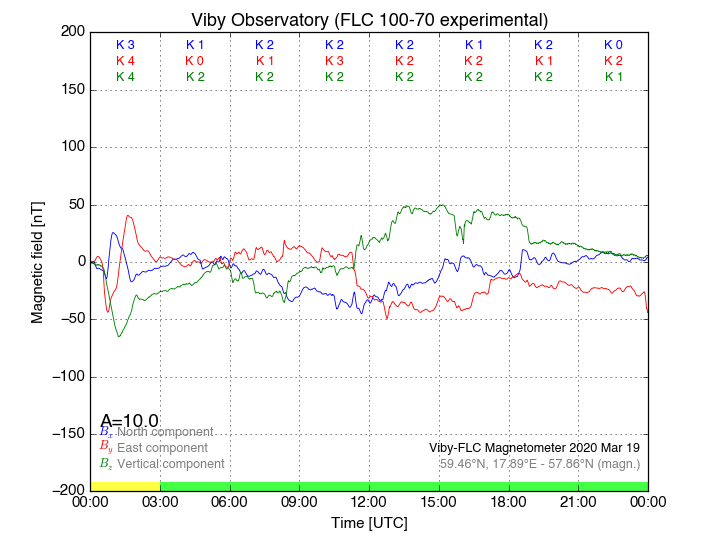Magnetometer Viby Viby (Sollentuna), Sweden · geographic coordinates: 59°27' N 17°54 E · geomagnetic coordinates (2017): 57.69°N, 106.22°E |