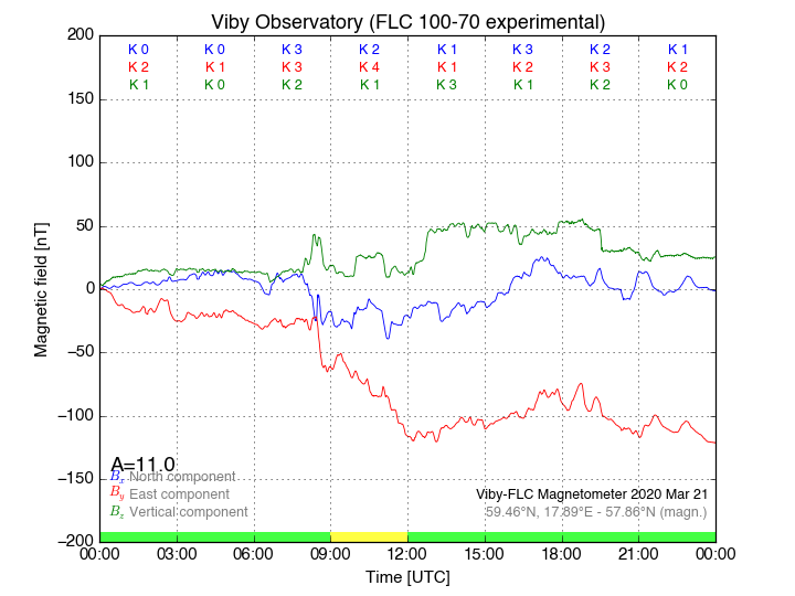 Magnetometer Viby Viby (Sollentuna), Sweden · geographic coordinates: 59°27' N 17°54 E · geomagnetic coordinates (2017): 57.69°N, 106.22°E |