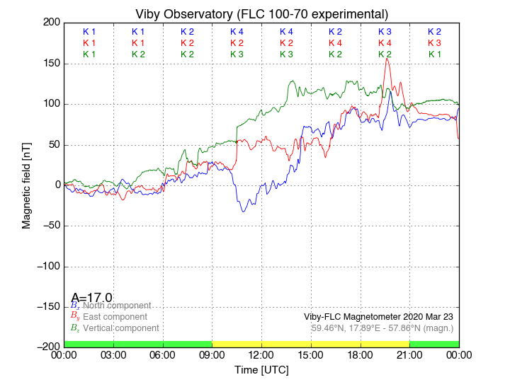 Magnetometer Viby Viby (Sollentuna), Sweden · geographic coordinates: 59°27' N 17°54 E · geomagnetic coordinates (2017): 57.69°N, 106.22°E |