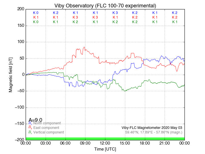 Magnetometer Viby Viby (Sollentuna), Sweden · geographic coordinates: 59°27' N 17°54 E · geomagnetic coordinates (2017): 57.69°N, 106.22°E |