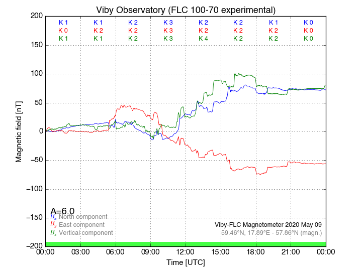 Magnetometer Viby Viby (Sollentuna), Sweden · geographic coordinates: 59°27' N 17°54 E · geomagnetic coordinates (2017): 57.69°N, 106.22°E |