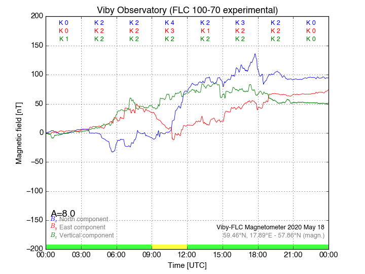 Magnetometer Viby Viby (Sollentuna), Sweden · geographic coordinates: 59°27' N 17°54 E · geomagnetic coordinates (2017): 57.69°N, 106.22°E |