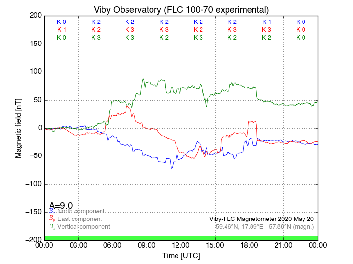 Magnetometer Viby Viby (Sollentuna), Sweden · geographic coordinates: 59°27' N 17°54 E · geomagnetic coordinates (2017): 57.69°N, 106.22°E |