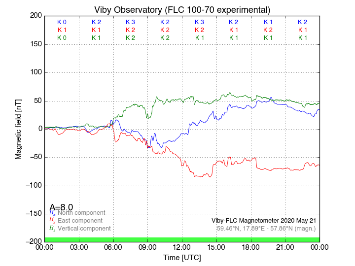 Magnetometer Viby Viby (Sollentuna), Sweden · geographic coordinates: 59°27' N 17°54 E · geomagnetic coordinates (2017): 57.69°N, 106.22°E |