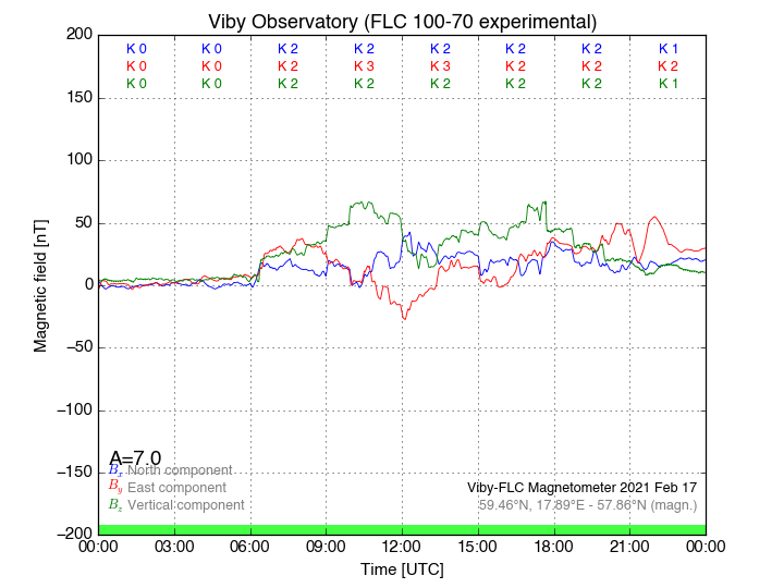 Magnetometer Viby Viby (Sollentuna), Sweden · geographic coordinates: 59°27' N 17°54 E · geomagnetic coordinates (2017): 57.69°N, 106.22°E |