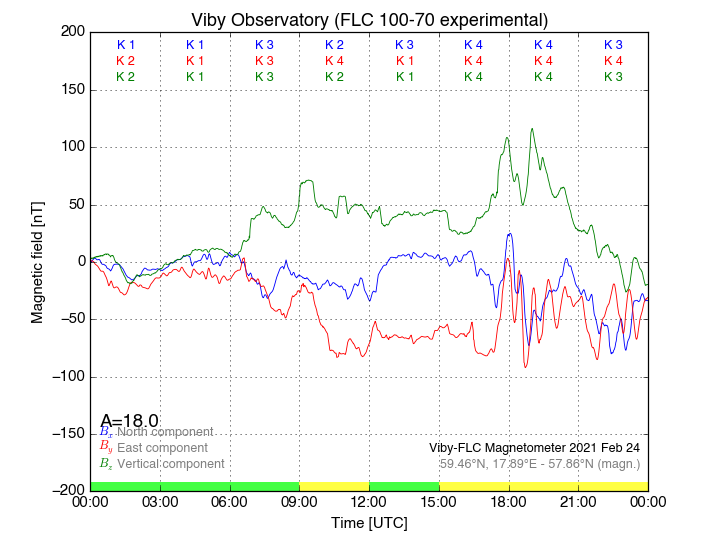 Magnetometer Viby Viby (Sollentuna), Sweden · geographic coordinates: 59°27' N 17°54 E · geomagnetic coordinates (2017): 57.69°N, 106.22°E |