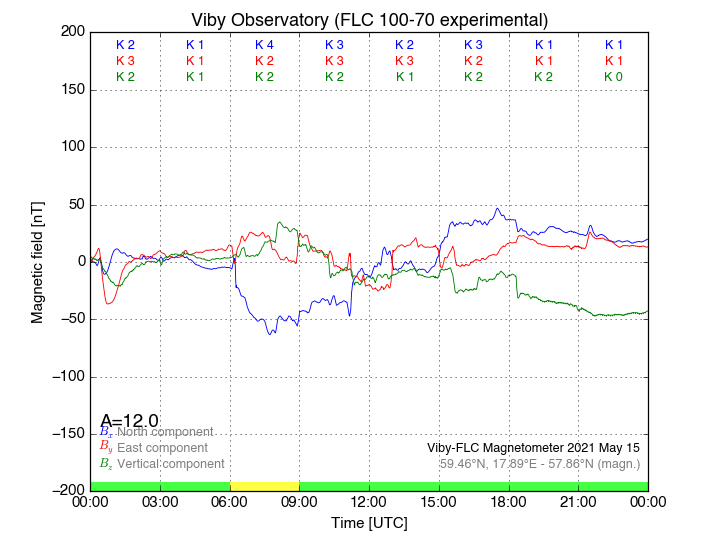 Magnetometer Viby Viby (Sollentuna), Sweden · geographic coordinates: 59°27' N 17°54 E · geomagnetic coordinates (2017): 57.69°N, 106.22°E |