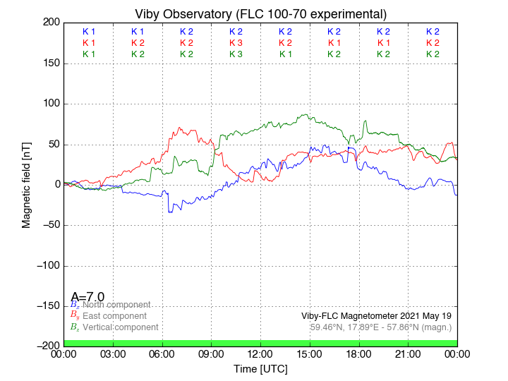 Magnetometer Viby Viby (Sollentuna), Sweden · geographic coordinates: 59°27' N 17°54 E · geomagnetic coordinates (2017): 57.69°N, 106.22°E |