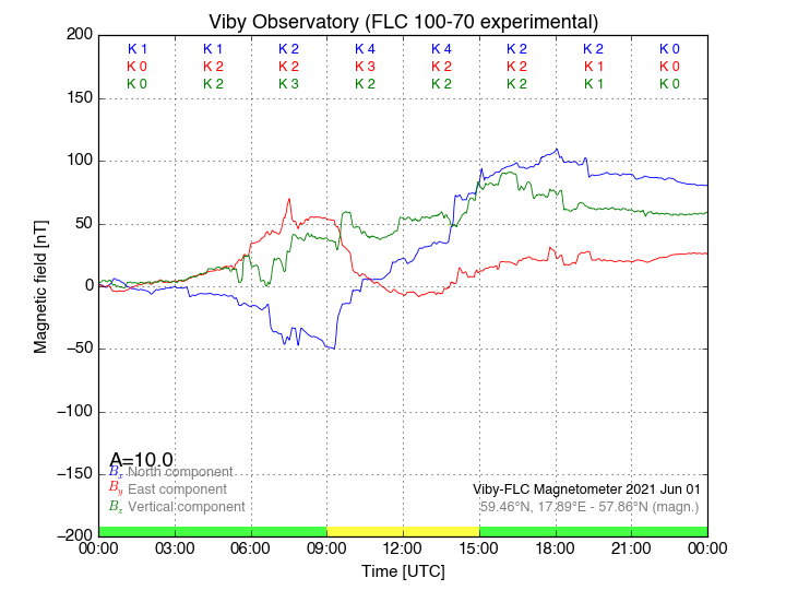 Magnetometer Viby Viby (Sollentuna), Sweden · geographic coordinates: 59°27' N 17°54 E · geomagnetic coordinates (2017): 57.69°N, 106.22°E |