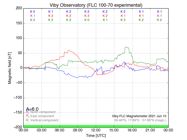 Magnetometer Viby Viby (Sollentuna), Sweden · geographic coordinates: 59°27' N 17°54 E · geomagnetic coordinates (2017): 57.69°N, 106.22°E |