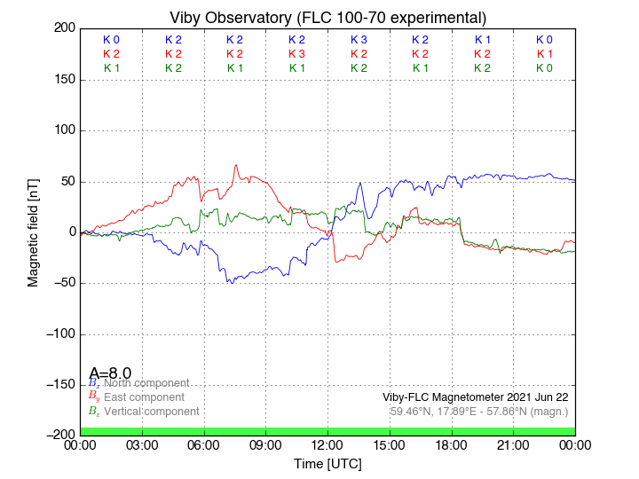 Magnetometer Viby Viby (Sollentuna), Sweden · geographic coordinates: 59°27' N 17°54 E · geomagnetic coordinates (2017): 57.69°N, 106.22°E |