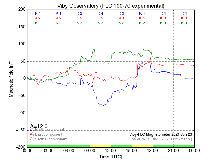 Magnetometer Viby Viby (Sollentuna), Sweden · geographic coordinates: 59°27' N 17°54 E · geomagnetic coordinates (2017): 57.69°N, 106.22°E |