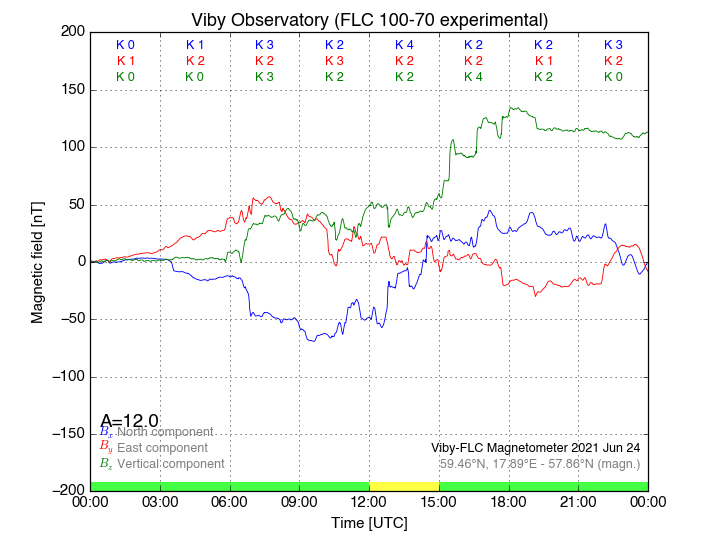 Magnetometer Viby Viby (Sollentuna), Sweden · geographic coordinates: 59°27' N 17°54 E · geomagnetic coordinates (2017): 57.69°N, 106.22°E |