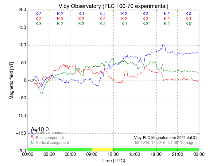 Magnetometer Viby Viby (Sollentuna), Sweden · geographic coordinates: 59°27' N 17°54 E · geomagnetic coordinates (2017): 57.69°N, 106.22°E |
