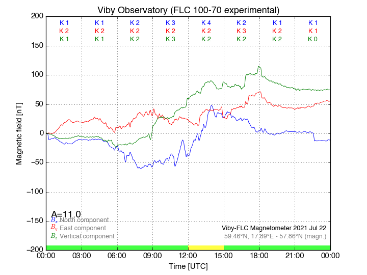 Magnetometer Viby Viby (Sollentuna), Sweden · geographic coordinates: 59°27' N 17°54 E · geomagnetic coordinates (2017): 57.69°N, 106.22°E |