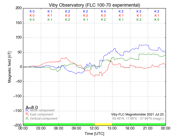 Magnetometer Viby Viby (Sollentuna), Sweden · geographic coordinates: 59°27' N 17°54 E · geomagnetic coordinates (2017): 57.69°N, 106.22°E |