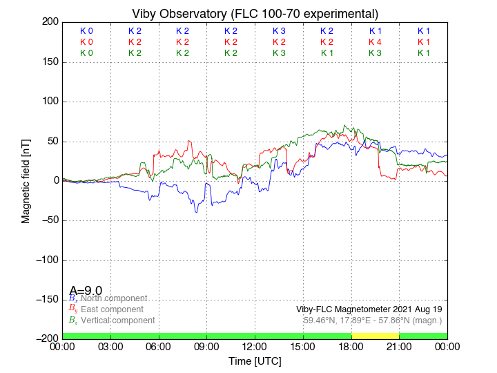 Magnetometer Viby Viby (Sollentuna), Sweden · geographic coordinates: 59°27' N 17°54 E · geomagnetic coordinates (2017): 57.69°N, 106.22°E |