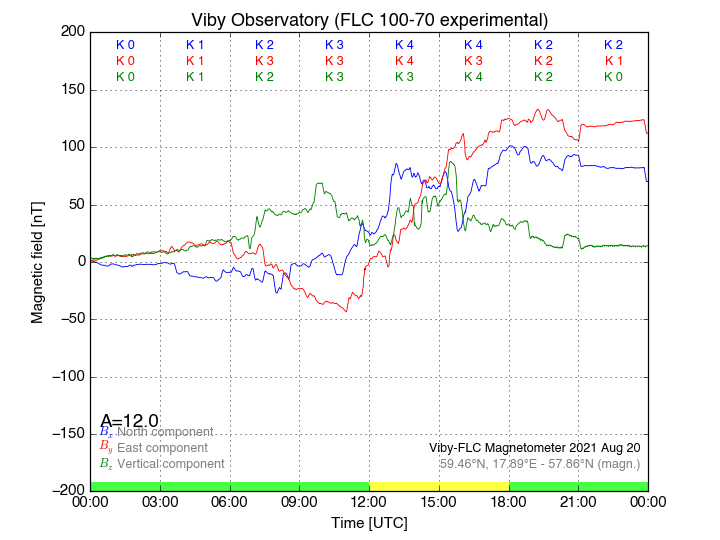 Magnetometer Viby Viby (Sollentuna), Sweden · geographic coordinates: 59°27' N 17°54 E · geomagnetic coordinates (2017): 57.69°N, 106.22°E |