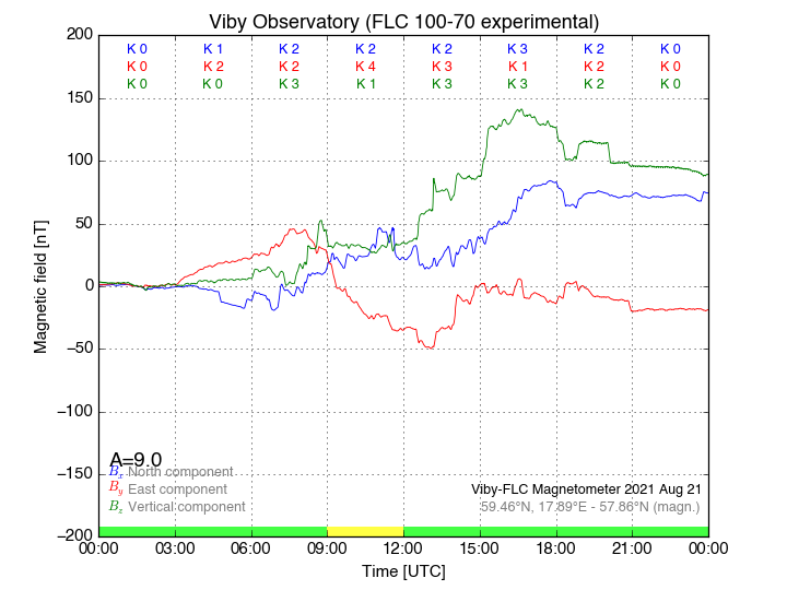 Magnetometer Viby Viby (Sollentuna), Sweden · geographic coordinates: 59°27' N 17°54 E · geomagnetic coordinates (2017): 57.69°N, 106.22°E |
