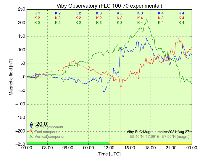 Magnetometer Viby Viby (Sollentuna), Sweden · geographic coordinates: 59°27' N 17°54 E · geomagnetic coordinates (2017): 57.69°N, 106.22°E |